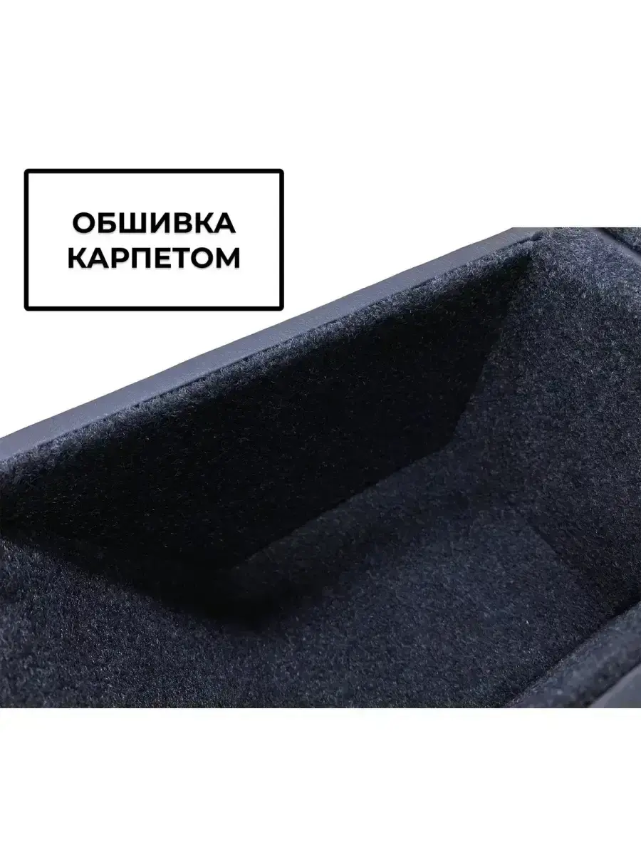 Подлокотник выполнен из качественной экокожи. Цвет подлокотника максимально приближен к цвету консоли и торпедо автомобиля. Внутри подлокотник обшит карпетом, обеспечивающим отличную шумоизоляцию.