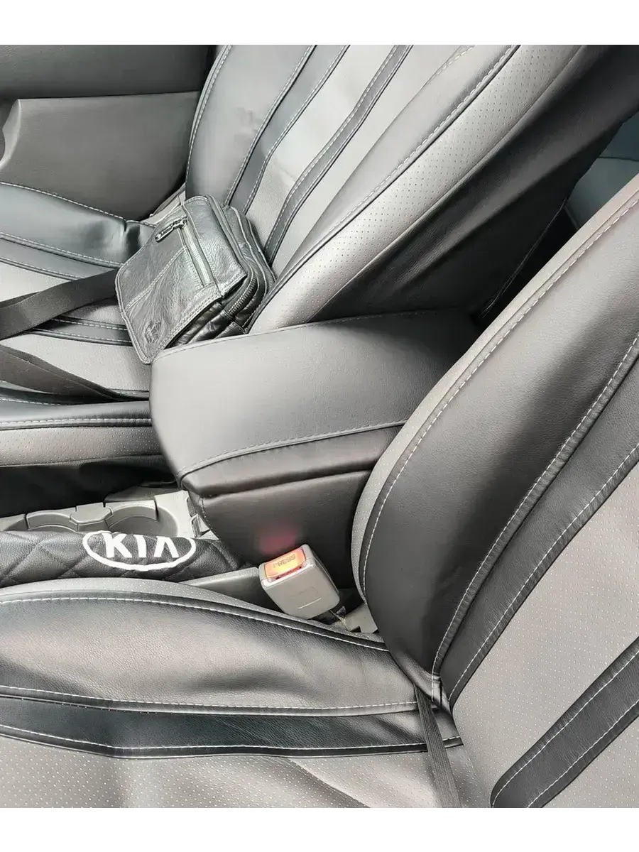 Подлокотник выполнен из качественной экокожи. Цвет подлокотника максимально приближен к цвету консоли и торпедо автомобиля. Внутри подлокотник обшит карпетом, обеспечивающим отличную шумоизоляцию.