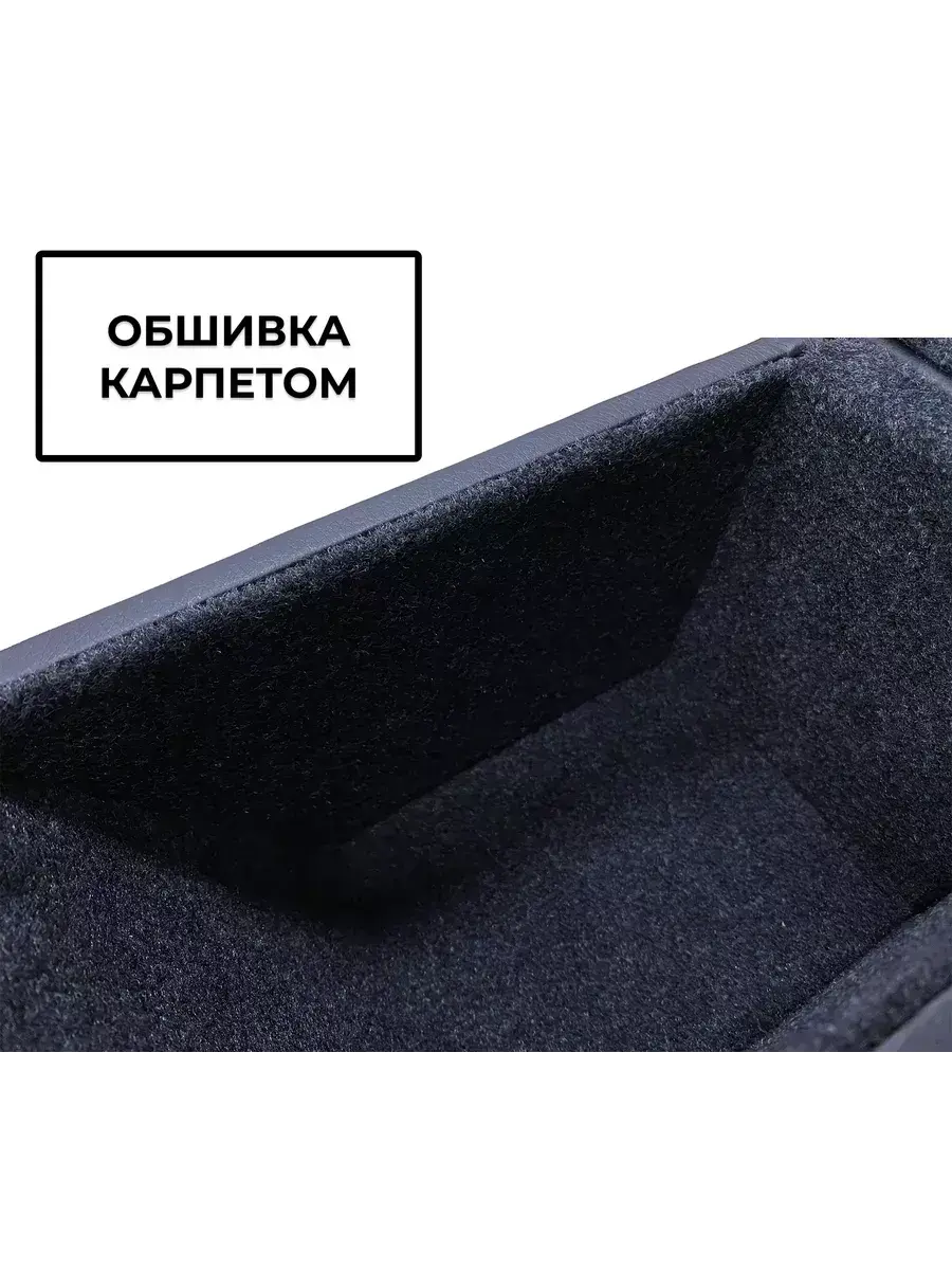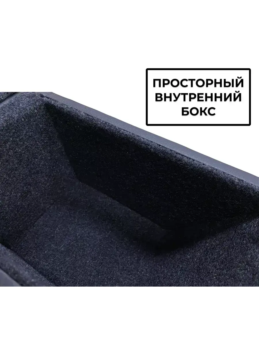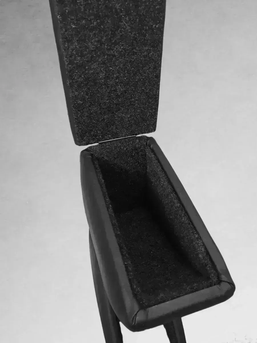 Подлокотник выполнен из качественной экокожи. Цвет подлокотника максимально приближен к цвету консоли и торпедо автомобиля. Внутри подлокотник обшит карпетом, обеспечивающим отличную шумоизоляцию.