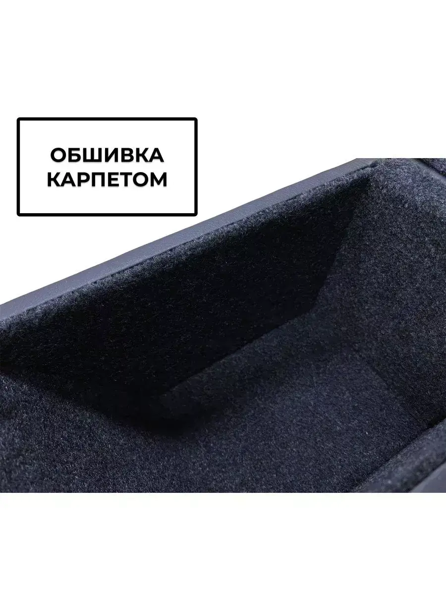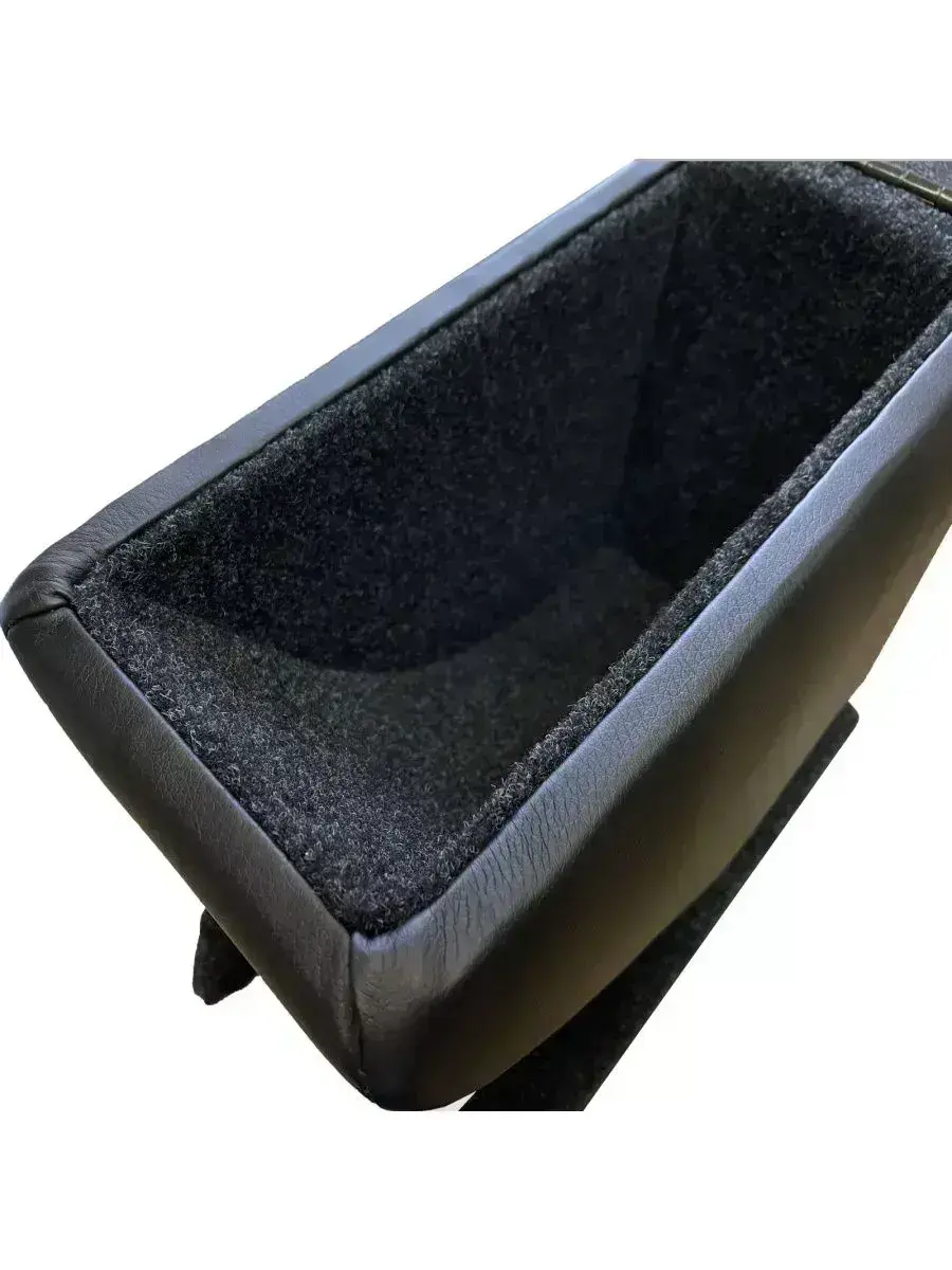 Подлокотник выполнен из качественной экокожи. Цвет подлокотника максимально приближен к цвету консоли и торпедо автомобиля. Внутри подлокотник обшит карпетом, обеспечивающим отличную шумоизоляцию.